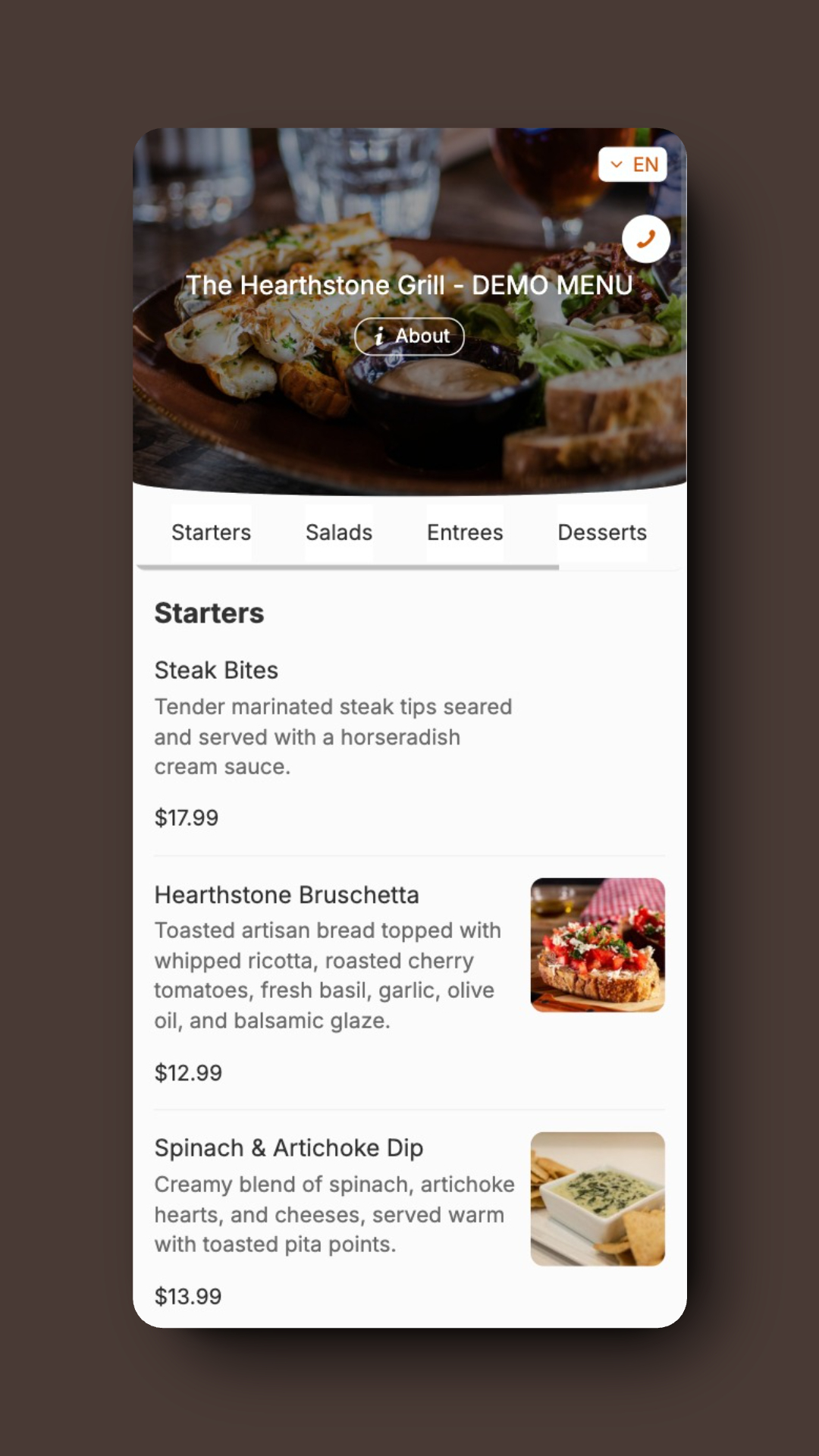 Join hundreds of restaurants that are growing online with our free professional websites.